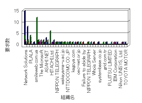 組織ユーザーにインターネット接続を提供する、商用または非営利団体、学術・行政機関などの、インターネット ドメイン で識別される団体や組織です。Microsoft Site Server Analysis は同じ組織に登録されたすべてのドメインを 1 つの組織としてグループ化します。ドメインがデータベースで使用できない場合は、1 つのインターネット ドメインが 1 つの組織を識別するのに使用されます。