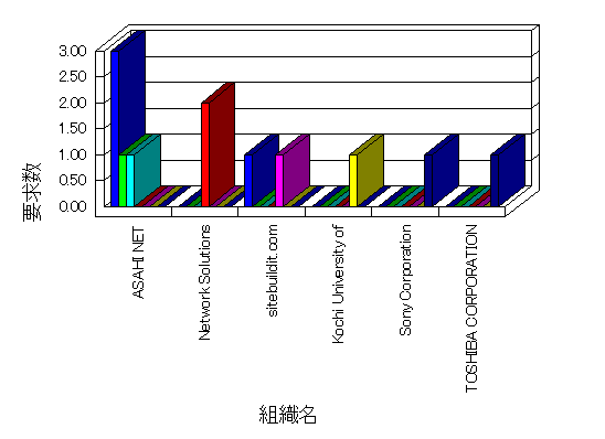 組織ユーザーにインターネット接続を提供する、商用または非営利団体、学術・行政機関などの、インターネット ドメイン で識別される団体や組織です。Microsoft Site Server Analysis は同じ組織に登録されたすべてのドメインを 1 つの組織としてグループ化します。ドメインがデータベースで使用できない場合は、1 つのインターネット ドメインが 1 つの組織を識別するのに使用されます。