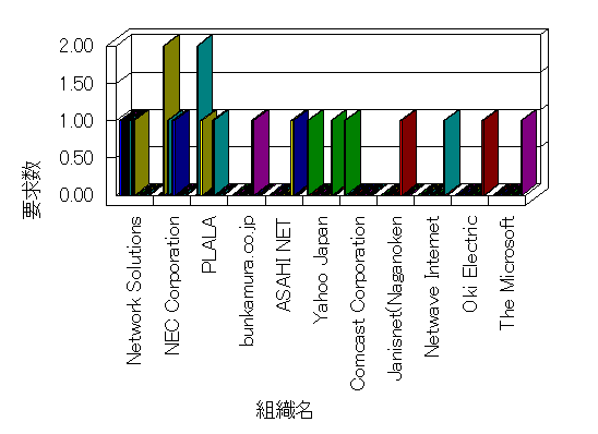 組織ユーザーにインターネット接続を提供する、商用または非営利団体、学術・行政機関などの、インターネット ドメイン で識別される団体や組織です。Microsoft Site Server Analysis は同じ組織に登録されたすべてのドメインを 1 つの組織としてグループ化します。ドメインがデータベースで使用できない場合は、1 つのインターネット ドメインが 1 つの組織を識別するのに使用されます。