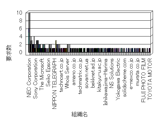 参照組織のサイトには、このサイトにリンクするページがあります。グラフでは、このサイトへのアクセス数に基づいた、上位 10 組織を示します。