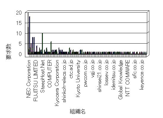 組織ユーザーにインターネット接続を提供する、商用または非営利団体、学術・行政機関などの、インターネット ドメイン で識別される団体や組織です。Microsoft Site Server Analysis は同じ組織に登録されたすべてのドメインを 1 つの組織としてグループ化します。ドメインがデータベースで使用できない場合は、1 つのインターネット ドメインが 1 つの組織を識別するのに使用されます。