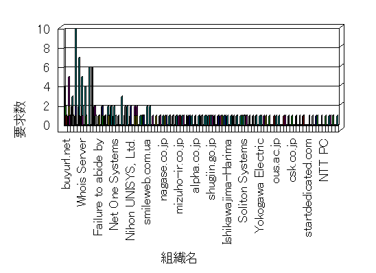 参照組織のサイトには、このサイトにリンクするページがあります。グラフでは、このサイトへのアクセス数に基づいた、上位 10 組織を示します。