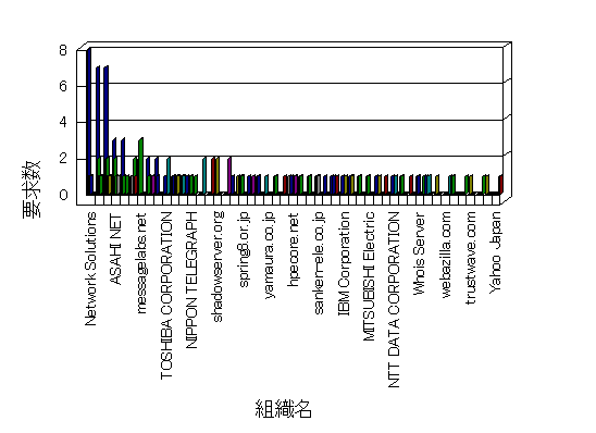 組織ユーザーにインターネット接続を提供する、商用または非営利団体、学術・行政機関などの、インターネット ドメイン で識別される団体や組織です。Microsoft Site Server Analysis は同じ組織に登録されたすべてのドメインを 1 つの組織としてグループ化します。ドメインがデータベースで使用できない場合は、1 つのインターネット ドメインが 1 つの組織を識別するのに使用されます。